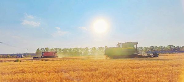 ? ?風吹麥成浪,收獲人倍忙。連日來,東辛12萬畝小麥迎來收獲高峰。伴隨著收割機在條田中來回穿梭,成片的麥子被快速收割、轉運,一場與時間賽跑的麥田搶收戰正在緊張有序的進行中。截止6月9日,東辛收獲小麥面積已接近總面積的三分之二。