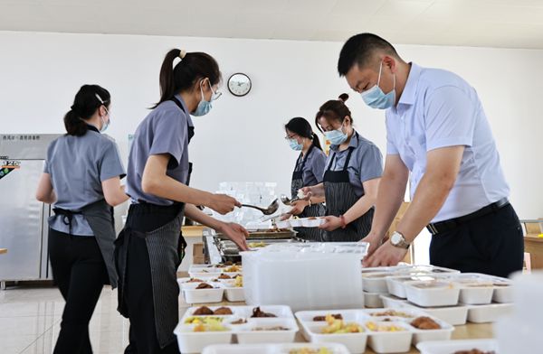 “三夏”期間招待所工作量驟然加大,但全體人員不叫苦、不喊累,加班加點,精工細作,每天早上五點廚房就已經(jīng)熱火朝天了,蒸米飯、洗菜、切菜、炒菜,一切都忙而有序地進行著。廚師李榮全說:“近期工作量相比平時雖然大了不少,但為一線支農(nóng)隊員服務,再苦再累也值得!”原來每天最多做一百多份飯菜,現(xiàn)在一天最多要做五百多份,同時還要進行打包。“我們只是做了自己力所能及的事情,一線人員比我們更辛苦。”工作人員小繆說到。