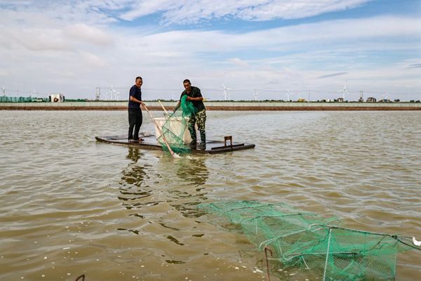 “入伏”以來,氣溫持續(xù)走高。金鯉漁業(yè)人堅(jiān)守在戶外工作崗位上,用奮斗的本色,描繪炎炎盛夏亮麗的風(fēng)景,用辛勞的汗水,譜寫墾區(qū)漁業(yè)實(shí)干的“贊歌”。在蒸籠般的臨海養(yǎng)殖區(qū)金剛蝦養(yǎng)殖大棚內(nèi),東辛農(nóng)場公司副總經(jīng)理王緒國、盧巖正在檢查金剛蝦長勢。“今年飼料價格依舊保持高位,成魚價格持續(xù)低迷,金鯉漁業(yè)及時推進(jìn)鮰魚訂單養(yǎng)殖銷售模式,以高于市場價格簽訂900萬斤訂單協(xié)議。”為規(guī)避淡水魚市場風(fēng)險,盧巖牽頭創(chuàng)新養(yǎng)殖模式,大膽推進(jìn)甲魚試驗(yàn)養(yǎng)殖,改造新建6口100畝甲魚池,放養(yǎng)甲魚種12萬斤,目前長勢喜人,有望獲得較好效益,以規(guī)避競爭激烈的淡水魚市場。