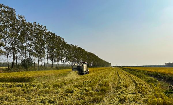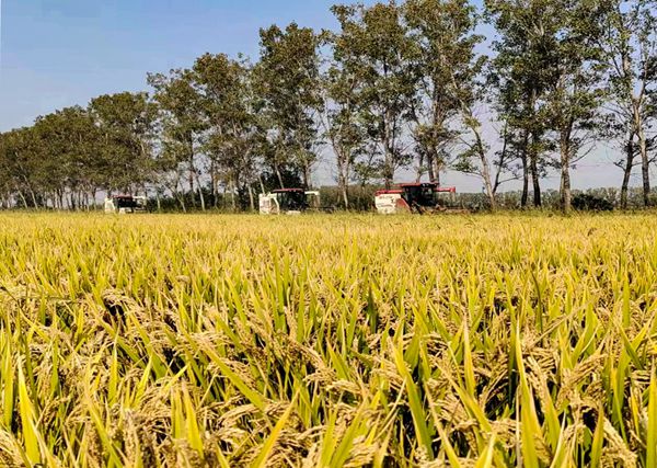 ? ? ? 風(fēng)吹稻田千重浪,又到一年秋收時。蘇墾農(nóng)發(fā)東辛分公司水稻種植基地稻田里一片金黃,稻穗籽粒飽滿,收割機(jī)在田間來回穿梭,一幅稻浪滾滾、稻粒飄香的豐收畫卷正徐徐展開,呈現(xiàn)出一片好“豐”景。