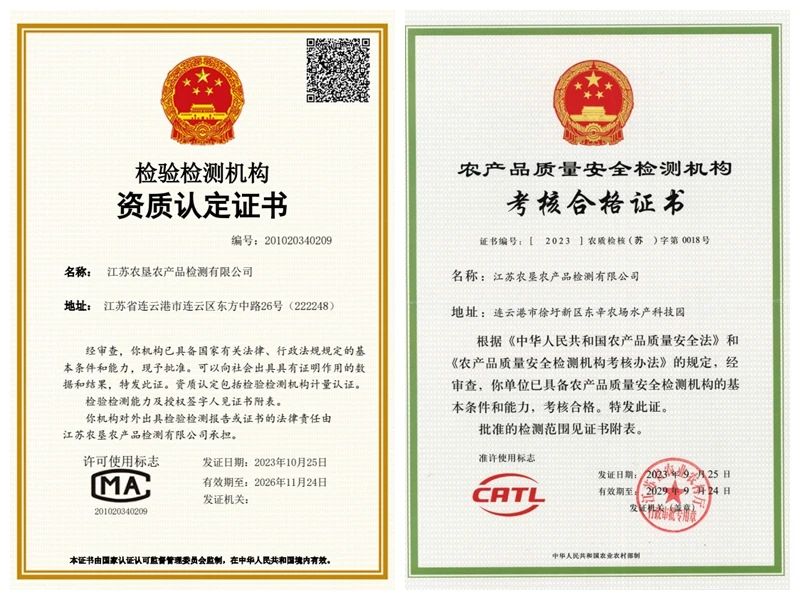 ? ? ? ?江蘇農(nóng)墾農(nóng)產(chǎn)品檢測(cè)有限公司自成立以來,先后取得江蘇省市場監(jiān)督管理局頒發(fā)的檢驗(yàn)檢測(cè)機(jī)構(gòu)(CMA)資質(zhì)認(rèn)定證書653個(gè)項(xiàng)目參數(shù)和江蘇省農(nóng)業(yè)農(nóng)村廳頒發(fā)的農(nóng)產(chǎn)品質(zhì)量安全檢測(cè)機(jī)構(gòu)考核合格證書(CATL)525個(gè)項(xiàng)目參數(shù),實(shí)現(xiàn)雙“C”認(rèn)證。公司檢測(cè)業(yè)務(wù)貫穿農(nóng)產(chǎn)品從生產(chǎn)到銷售的全產(chǎn)業(yè)鏈,專業(yè)從事農(nóng)產(chǎn)品種苗、投入品、產(chǎn)成品質(zhì)量,農(nóng)業(yè)生產(chǎn)環(huán)境等檢驗(yàn)檢測(cè)。檢測(cè)項(xiàng)目涵蓋理化指標(biāo),金屬元素,藥殘毒素等。