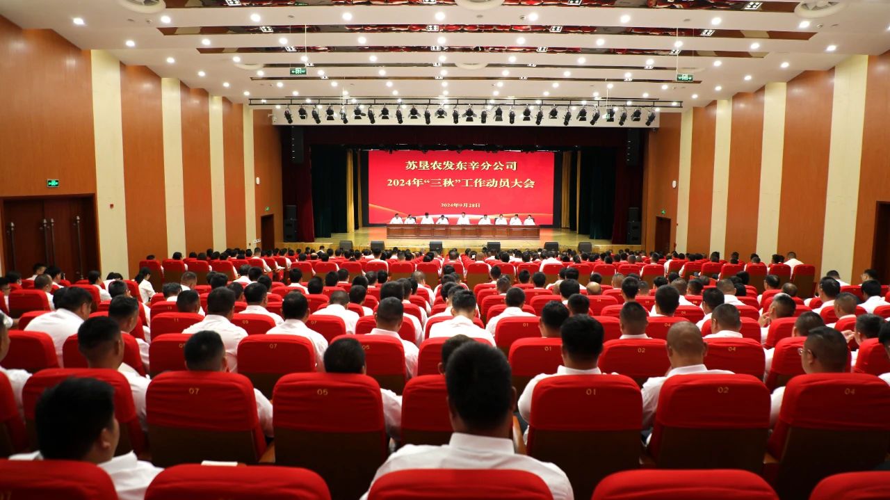 為深入貫徹落實蘇墾農發“三秋”工作會議精神,全力以赴打好“三秋”攻堅戰,9月28日上午,蘇墾農發東辛分公司在文化活動中心召開2024年“三秋”工作動員大會。東辛黨委書記、董事長、蘇墾農發東辛分公司總經理趙志講話,黨委副書記姜杰主持會議,黨委委員、蘇墾農發東辛分公司常務副總經理陳躍武作“三秋”工作動員報告。