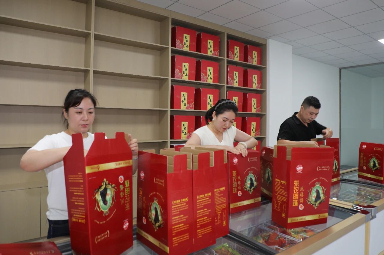 連云港市核心農貿市場內,東辛農場農產品直銷店的籌備工作正緊鑼密鼓地進行著,開業在即。貨架前,工作人員仔細核驗冷凍雞產品、蛋、奶等優質農產品信息,并精心規劃陳列布局,確保品牌信息清晰醒目,每一個細節都彰顯著對品質的嚴格把控。