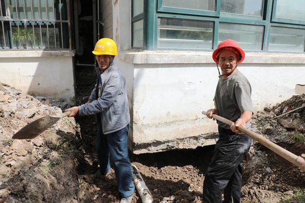 到達現場后,薛益德立即通知維修人員,迅速上報故障點位,緊急拉起警戒線,組織人員開始搶修,并用安全警示牌將管道堵塞點和吸污工作點圍起來,搶修人員手持鐵鍬一邊開挖工作坑,一邊進行排水,并用漏網和鐵鏟將管道里的結塊油污撈出。漆黑的夜晚,借助微弱的燈光,搶修人員穿著雨鞋浸在臟臭的泥水里,大家半蹲著進行割管、清理、連接,附近的一些居民主動加入了搶修工作,有的幫忙清理垃圾,有的幫忙遞工具,有的自發地從家中拿水給大家喝,有的從家中拿出探照燈給維修人員現場打燈......即使拖著疲憊的身體,忍受下水道刺鼻的氣味,但看到居民那期盼焦急中帶有關心的目光,大家已然顧不上辛勞,加快了搶修的速度,搶修現場一片緊張而又和諧的氛圍。經過3個多小時搶修,夜晚11點半左右下水管道恢復了暢通,居民樓排水問題得以解決,大家紛紛為物業人員點贊!
