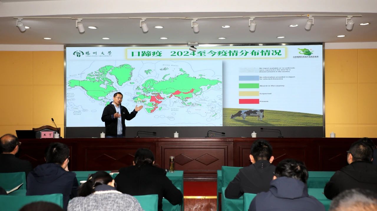 此次培訓會邀請揚州大學獸醫學院教授博士生導師現任臨床獸醫外科教研室主任江蘇省現代農業(奶牛)產業技術體系副首席兼疾病防控創新團隊崗位專家王亨和連云港市農業農村局農產品質量安全監管處副處長代丹丹進行授課,兩位專家憑借豐富的理論知識和實踐經驗,結合東辛養殖實際,深入淺出地講解了當下奶牛和禽類動物養殖常見疾病防控要點和關鍵技術當前農產品質量安全形勢和要求等方面內容。參訓人員認真聽講、仔細記錄,學習氛圍濃厚。