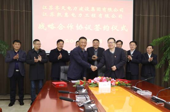 ? ? ? 在簽約現場,雙方紛紛表示,在遵守國家法律和各自行業相關政策和標準的前提下,雙方互相開放資源,實現“合作共贏、優勢互補”。雙方希望以此次簽約作為良好開端,明確合作原則,固化共享經驗,推動全面深入合作,促進電力事業發展,不斷為行業和社會創造價值。隨后,在雙方領導的共同見證下,東辛凱惠電力工程有限公司總經理馮明忠與江蘇齊天電力建設集團有限公司總經理張魁共同簽訂了《戰略合作協議》。