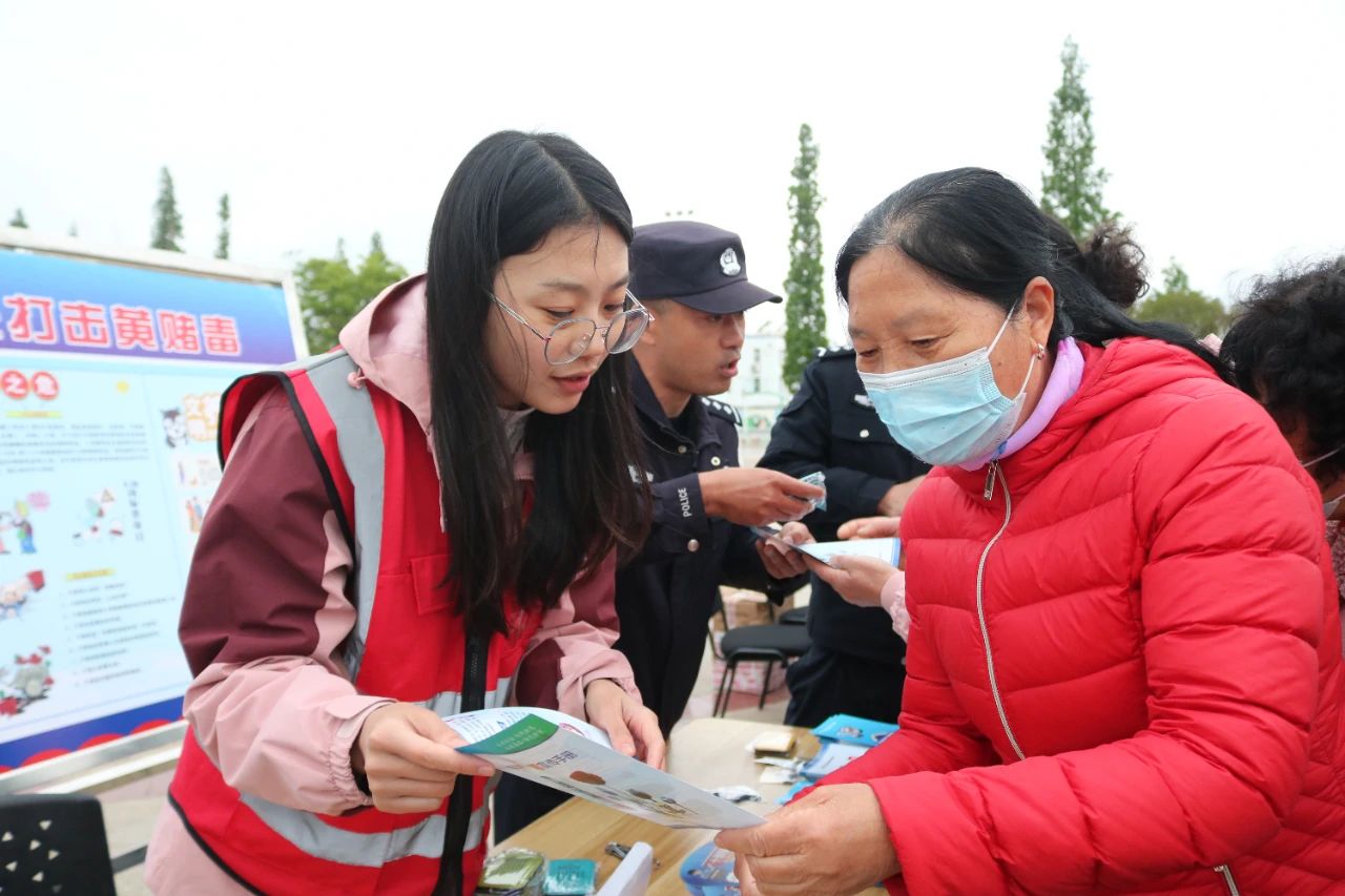 同時,活動現場設置了宣傳展板,工作人員向群眾發放了宣傳手冊,講解相關知識,大力宣傳防詐反邪、禁毒等平安建設知識,讓居民在娛樂活動中潛移默化地吸收更多知識,不斷增強居民防范“免疫力”,讓平安建設宣傳入眼入腦入心。活動結束后,不少居民仍意猶未盡。居民廖玉萍一手拿著宣傳資料,一手拿著小禮品,開心地表示:“反詐反邪宣傳還能跟藝術表演相結合,這樣的活動好看又好玩,還能學知識!”