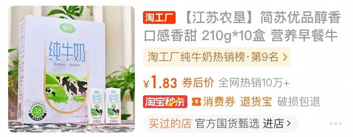 淘工廠作為阿里巴巴旗下的電商平臺,為“簡蘇”牛奶提供了廣闊的展示空間。自上線以來,“簡蘇”牛奶憑借優異品質和良好口碑逐步打開市場,設置單個、組合、整箱等多種購買選項,滿足消費者多元搭配需求,有效帶動持續關注與復購。訂單量突破十萬單,不僅是銷售數據的跨越,也是東辛不斷追求產品品質、精準把控客戶需求的生動實踐,更是品牌與消費者建立信任的重要見證。