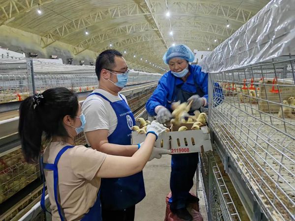 今年以來,東米公司按照生產高效、環境友好、產品安全、管理先進行業要求,重點落實東升雞場籠養改造升級工程,利用養殖間隙加緊施工作業,完成15幢雞舍改造任務,加急進行籠具安裝,確保及時進苗養殖,做到改造生產兩手抓兩不誤。進入5月份新一輪肉雞養殖黃金期以來,東米公司東升雞場養殖人員每天冒著高溫有序忙碌著,他們三人一組,一天24小時不間斷的在雞舍巡邏,定時給雛雞加料、補水、通風、出糞,檢查其生長情況和設備運行情況,不停地穿梭在各個雞舍之間,在悶熱的雞舍內,一呆就是好幾個小時。在人手緊張的關鍵時刻,東米黨支部與機關產業發展部結對共建開展雞苗轉群勞動競賽,利用一天時間對東升雞場所進雞苗進行分群轉移。大家以飽滿的熱情,頂著雞舍外氣候炎熱和雞舍內供暖高溫的考驗,分工明確、責任到人,抓苗數數的、拖車拉苗的各負其責,大家汗流浹背也不叫苦叫累,圓滿完成6萬只雞苗轉群工作。成雞出欄銷售時,凌晨時分雞場內已是燈火通明,人頭攢動,養殖人員嚴陣以待、全員出動做好四幢雞舍的肉雞售賣工作,只見工人們熟練的推著裝雞的筐子,拉開雞舍籠門雙手快速的抓雞、裝雞,再將筐子運至貨車旁,移筐上車。抓雞現場大家熱情高漲,一邊裝車一邊數著雞舍里肉雞的數量,紛紛為自己40天的日夜勞作成果而感到高興,從深夜一直忙到了午后大家也不覺得累,順利完成當批12萬只肉雞的售賣工作。